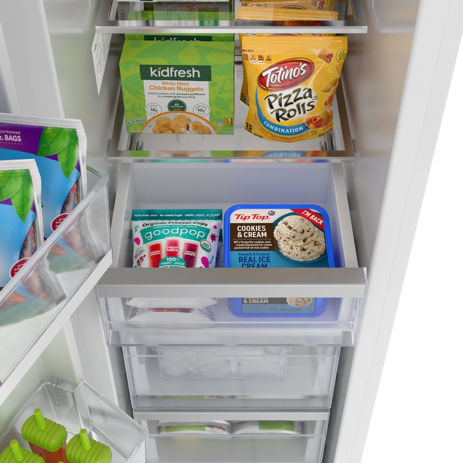 - Durable Build with Quality Materials: Designed with a high-quality plastic interior and metal-trimmed drawers, this freezer is built for lasting reliability and easy cleaning.