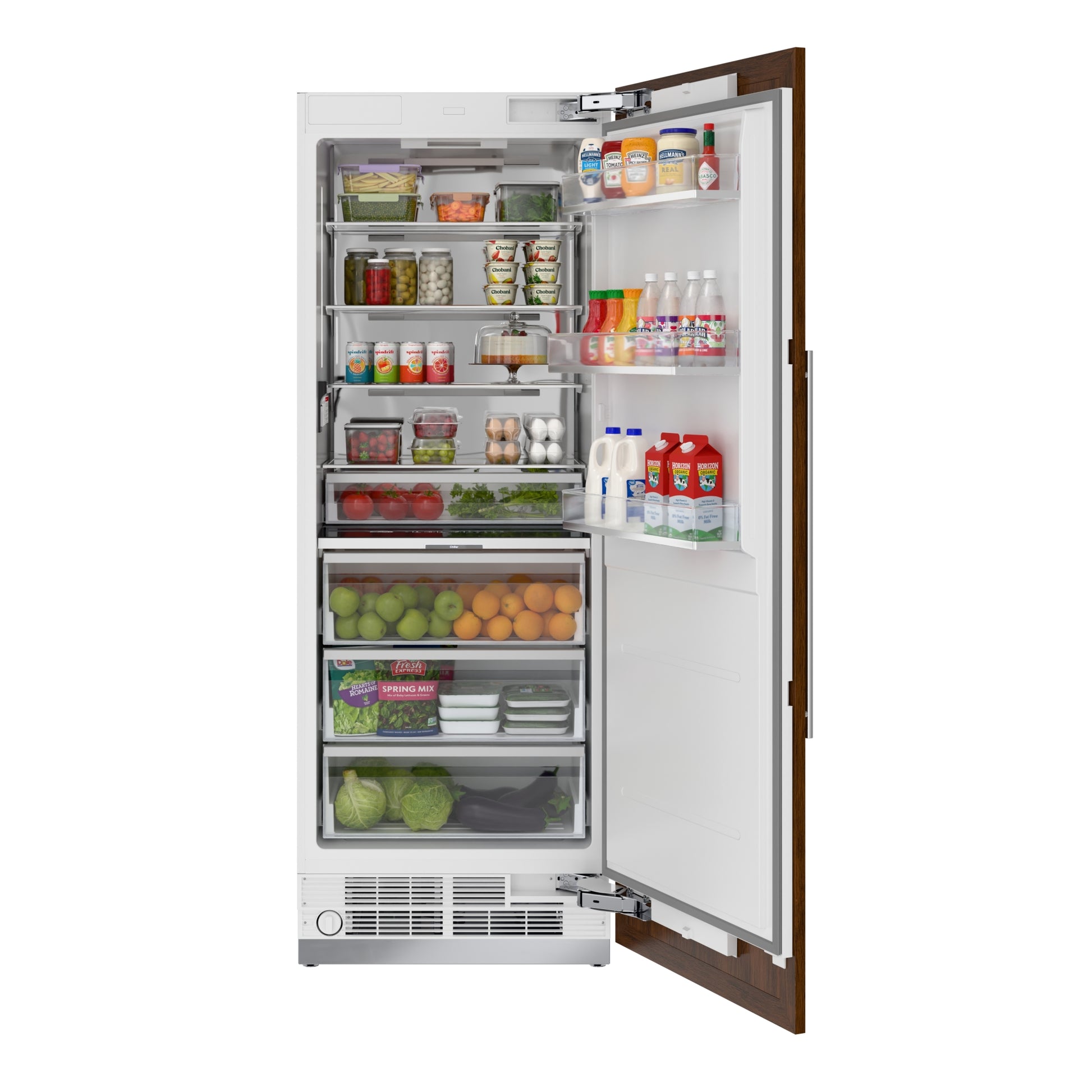 - Panel-Ready Design: The customizable front panel matches your refrigerator to your kitchen cabinetry, creating a sleek and modern built-in look. This feature ensures that the appliance integrates effortlessly into your kitchen's aesthetic while maintaining its high-end appearance. Panel Dimensions: 29.76" W x .75" D x 79.92" H.