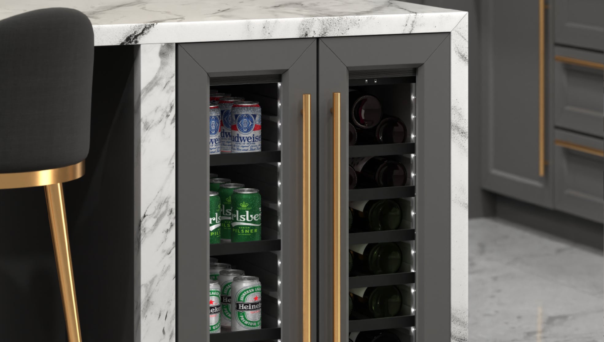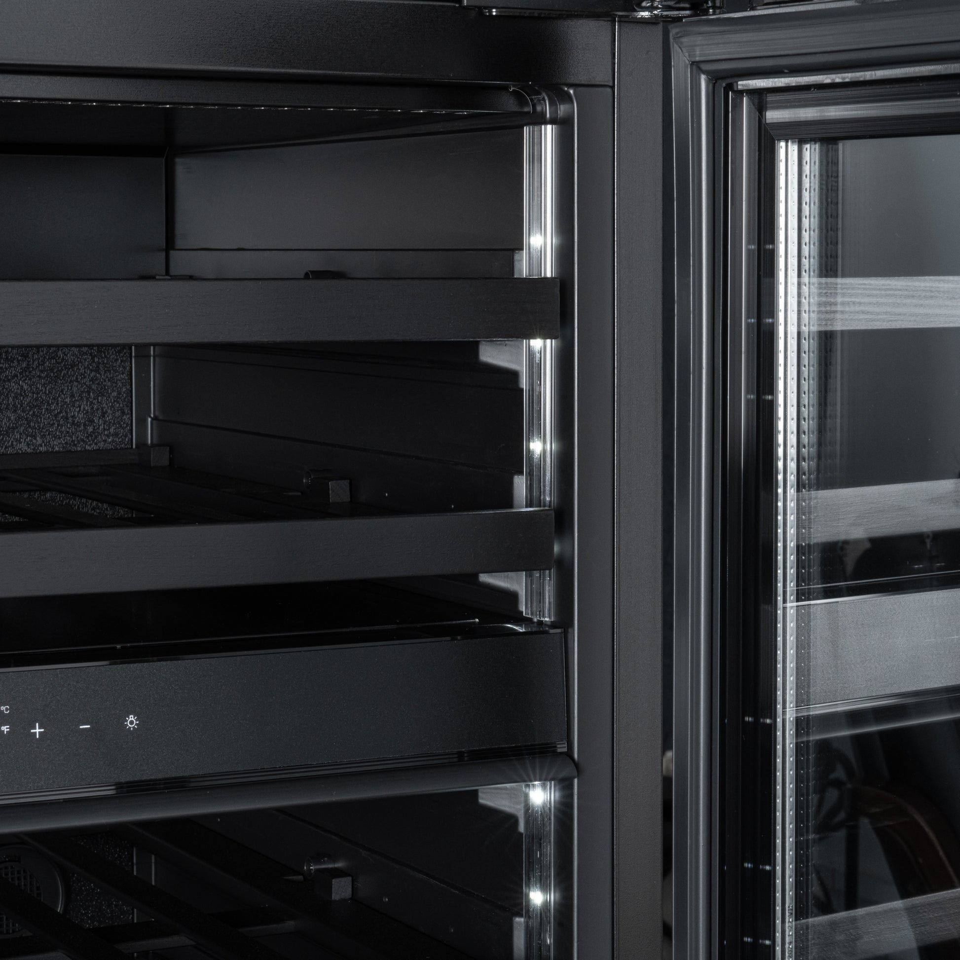 - LED Lighting: Illuminate your collection with your choice of amber, blue, or white LED lighting. Create a captivating display while enhancing visibility without emitting heat that could affect wine quality.