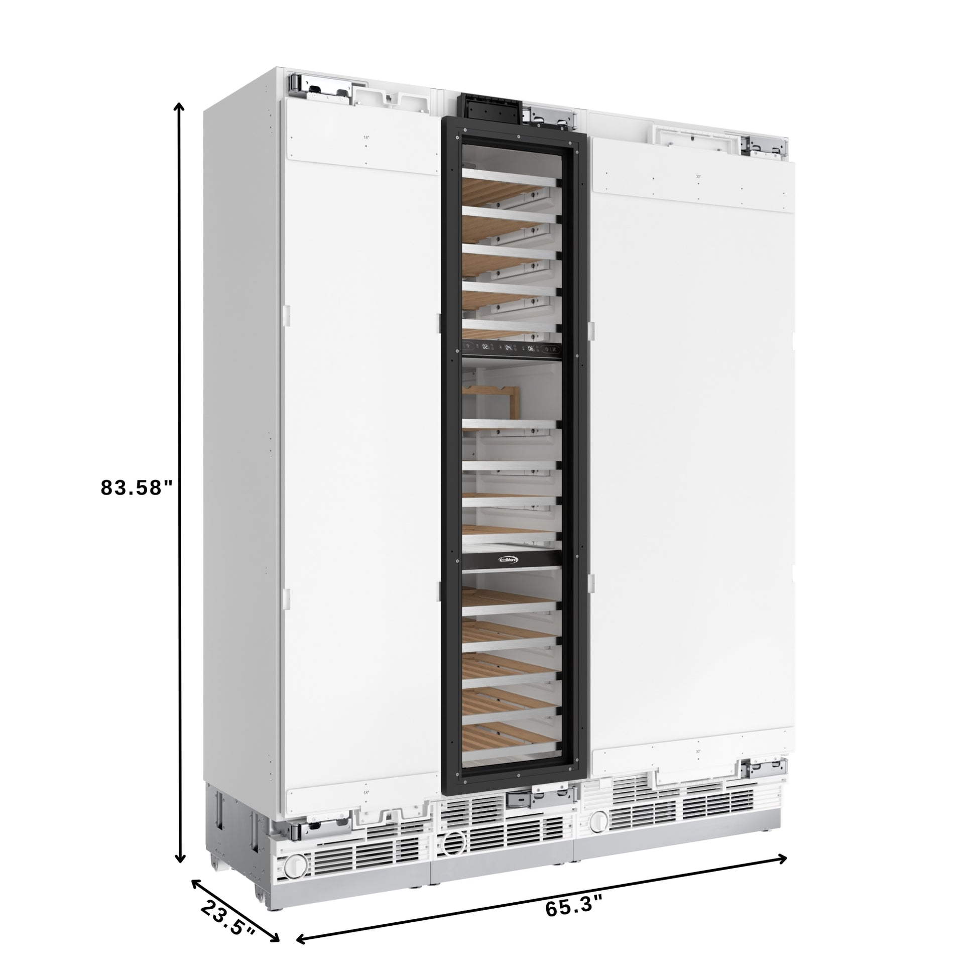 - Panel-Ready Design for Seamless Integration: All three appliances feature customizable fronts that match your kitchen cabinetry, creating a clean, cohesive, and built-in aesthetic that elevates your kitchen’s overall design. The panel dimensions are as follows: refrigerator – 29.76" W x 0.75" D x 79.92" H; wine cooler – outer panel: 17.76" W x 0.75" D x 79.93" H, inner panel: 12.24" W x 0.75" D x 61.81" H; freezer – 17.6" W x 0.75" D x 79.92" H.